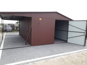 dwuspadowy na boki, blacha trapez T14, kolor RAL8017 połysk brąz