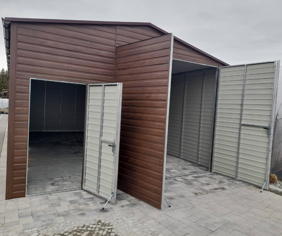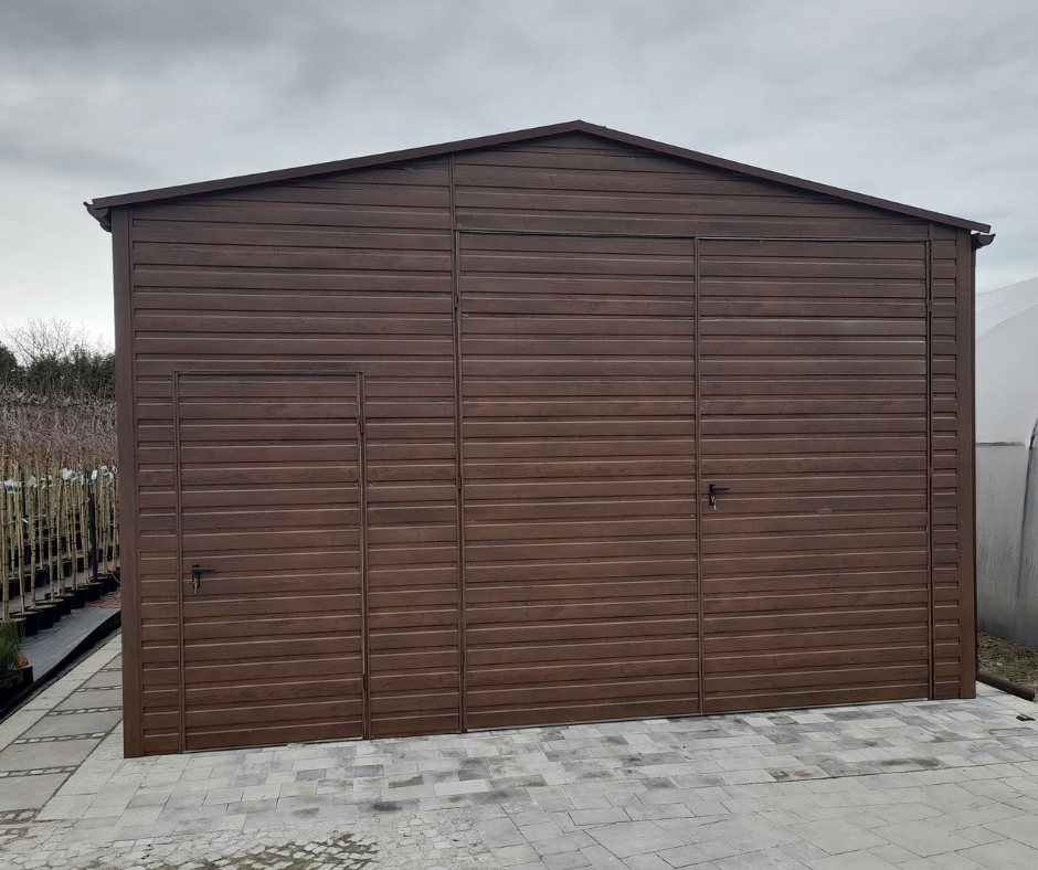 Hala magazynowa 5×10 | DWUSPAD | PROFIL ZAMKNIĘTY OCYNKOWANY | KOLOR RAL8017 MAT BRĄZ+ORZECH