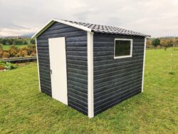 Absolutna nowość! Kolor grafitowy ze strukturą drewna - multigross grafitowy. W naszej ofercie prezentujemy metalowy domek ogrodowy 3x3 metra z dachem dwuspadowym, oknem, drzwiami i dachem pokrytym blachodachówką Solidnie wykonana konstrukcja z profili zamkniętych, poziome przetłoczenie blachy na ścianach, nity w kolorze blachy, komplet okuć narożnych i dachowych. Opcjonalnie istnieje możliwość zmiany wymiarów oraz ułożenia elementów (okno, drzwi, kształt dachu). Zapraszamy do kontaktu i indywidualnej wyceny.