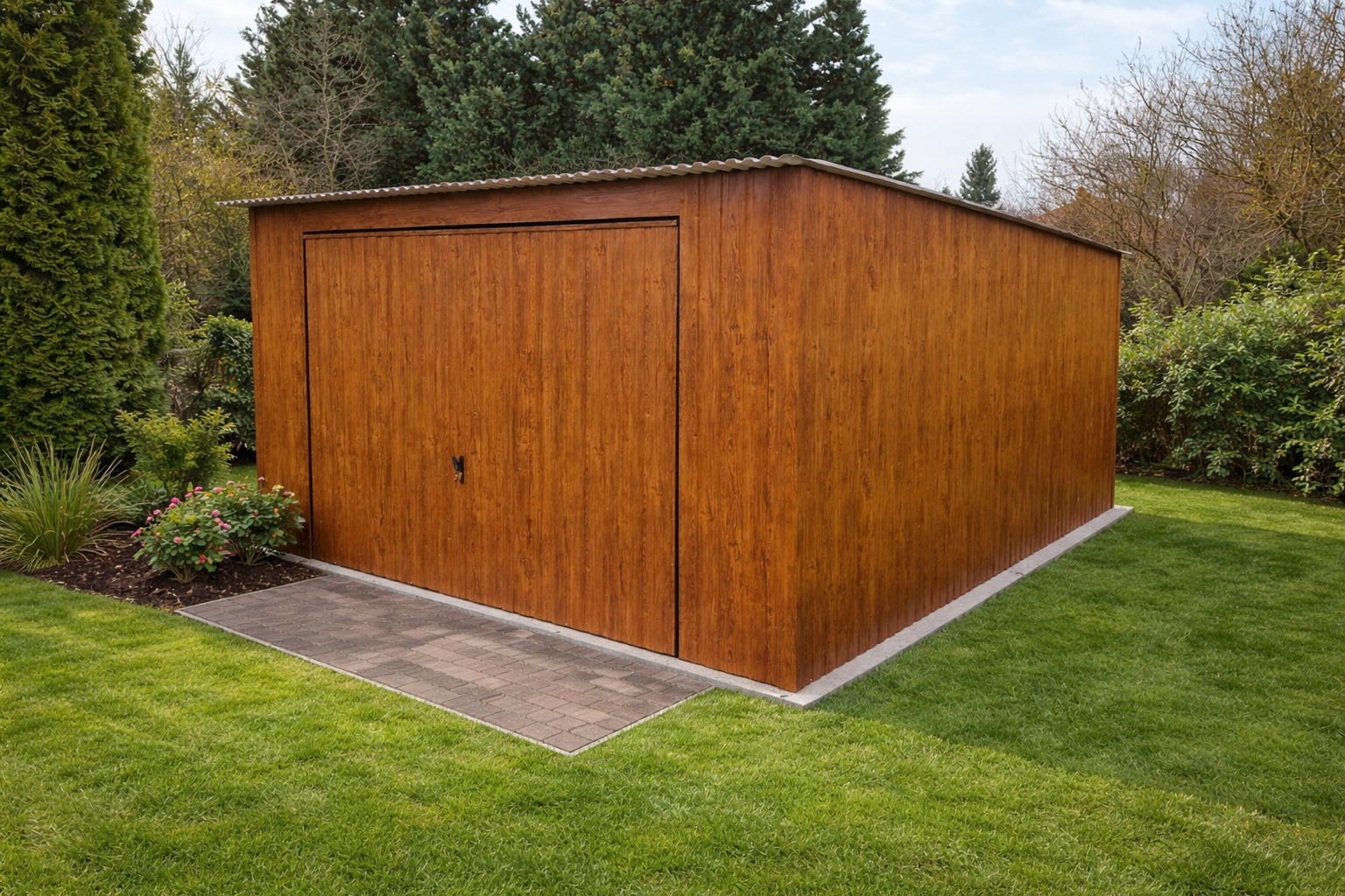 Nowoczesne garaże z poziomym ułożeniem paneli na ścianach bocznych posiadają okucia narożne już w standardzie ze względu na konieczność zamknięcia szpar powstałych pomiędzy konstrukcją a blachą dlatego w tym przypadku ta opcja staje się standardem.