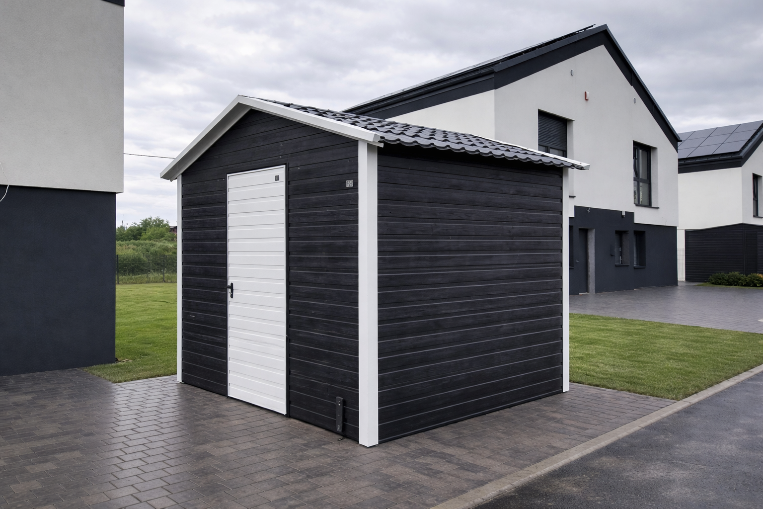 Wyjątek stanowią garaże z poszyciem dachu wykonanym z blachodachówki, gdzie okucia dachu są konieczne do tego aby woda nie zaciekała do wnętrza. Przykłady poniżej: